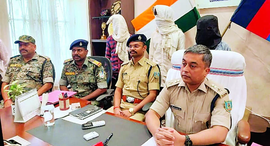 لوہردگا: پولیس نے لوہردگا ضلع کے پیشرار تھانہ علاقے کے تحت کیکرانگ برٹولی گاؤں میں پیش آنے والے ٹریپل مرڈر کیس کو صرف 48 گھنٹوں کے اندر ہی حل کرلیا۔ گرفتار افراد کو پریس میڈیا کے سامنے پیش کرتے ہوئے یہ بات سامنے آئی کہ توہم پرستی اور برائیوں میں پھنسے تین نوجوانوں نے ایک ہی خاندان کے تین افراد، لکشمن ناگیسیا (47)، اس کی بیوی بیفنی ناگیسیا(47) اور بیٹے رام ولاس (10) کو ڈائن بساہی ہونے کے شک میں بے دردی سے قتل کیا تھا۔ گرفتار ملزمین سکھ ناتھ ناگسیا عمر 26 سال، بندیشور ناگسیا عمر 21 سال اور سنچروا ناگسیا عمر 19 سال نے پولیس کی تفتیش میں اقبال جرم کیا کہ انہیں متوفی بیفنی ناگسیا پر اوجھا مونی اور جھاڑ پھونک کا شک تھا۔ توہم پرستی کی وجہ سے انہیں لگا کہ بیفنی کے جادو ٹونا سے ایک کی بیوی کا اسقاط حمل ہوا اور دوسرے کی ماں بیمار رہتی تھی۔ اسی توہم پرستی میں اندھے ہو کر تینوں ملزمین نے 8/9 اکتوبر کی درمیانی شب میں بیفنی ناگسیا اور اس کے خاندان کا بے رحمی سے قتل کردیا۔ 9 اکتوبر کی صبح اس واقعہ کی اطلاع ملنے پر لوہردگا پولیس سپرنٹنڈنٹ کی ہدایت پر ایس ڈی پی او کسکو ویدانت شنکر (آئی پی ایس) کی قیادت میں ایک ایس آئی ٹی ٹیم تشکیل دی گئی۔ اس ٹیم میں پیشرار پولس اسٹیشن کے انچارج بیریندر کمار، بگڈو تھانے کے انچارج دنیش کمار، ویمن پولس تھانہ انچارج جینی سودھا تیگا، ایس آئی سنجے کمار، اے ایس آئی شری کانت داس، ٹیکنیکل برانچ کے نیرج کمار مشرا اور سیکورٹی اہلکار شامل تھے۔ فرانزک ٹیم نے جائے واقعہ سے شواہد اکٹھے کیے اور 10 اکتوبر کو ڈاگ اسکواڈ کو بلا کر تفتیش تیز کر دی گئی۔ 48 گھنٹے کے اندر تینوں ملزمین کو گرفتار کر لیا گیا۔ ان کی اطلاع کے بعد، پولیس نے ایک خون آلود کدال، ایک پتھر، خون آلود لباس، اور ایک ہیرو ڈیلکس موٹر سائیکل (جے ایچ 01 سی ڈبلیو 8978) برآمد کیا۔ یہ کامیابی ایس ڈی پی او کسکو، پیشرار پولس اسٹیشن کے انچارج بیریندر کمار، بگدو پولس اسٹیشن کے انچارج دنیش کمار، ویمن پولیس اسٹیشن انچارج جینی سدھا تیگا اور کئی دیگر پولیس افسران اور اہلکاروں کے مشترکہ آپریشن کے ذریعے حاصل کی گئی۔ تینوں ملزمین کو ہفتہ کو عدالتی حراست میں بھیج دیا گیا۔ یہ المناک واقعہ ایک بار پھر ثابت کرتا ہے کہ توہم پرستی اور سماجی برائیاں آج بھی دیہی معاشرے کی سب سے بڑی دشمن ہیں۔ لوہردگا پولیس کی مستعدی نے نہ صرف اس قتل کو تیزی سے خلاصہ کیا بلکہ یہ پیغام بھی دیا کہ کوئی جادو ٹونا کا معاملہ قانون سے زیادہ طاقتور نہیں ہے۔